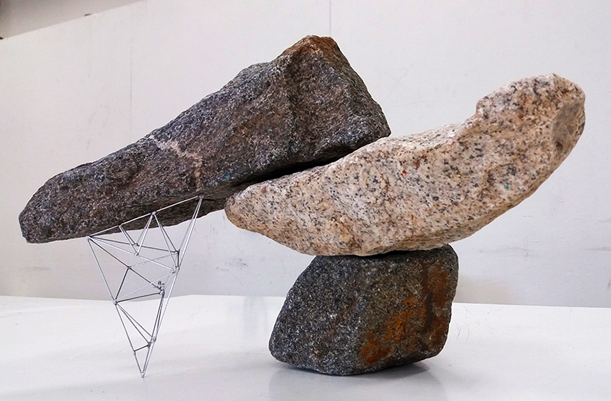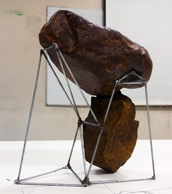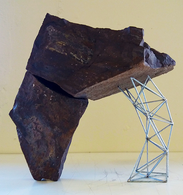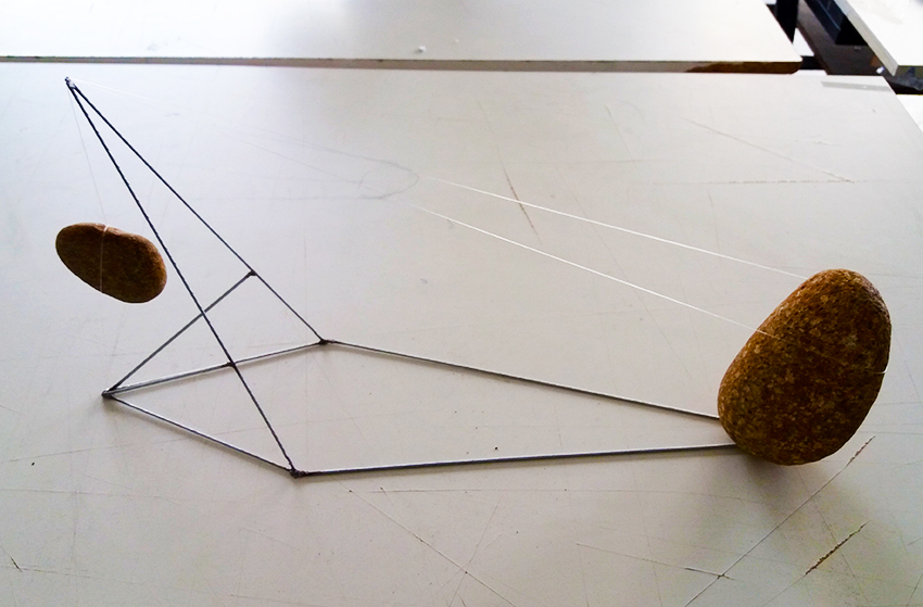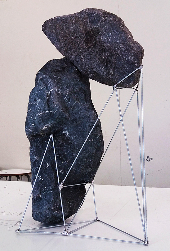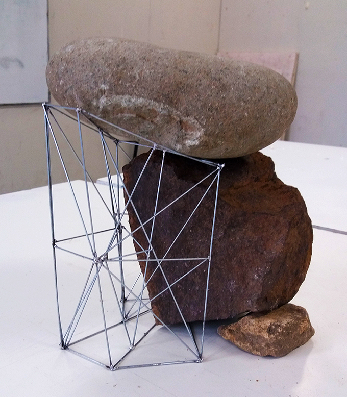 El objetivo de este ejercicio abstracto es trabajar una dualidad estructural física tratando de generar espacialidades interiores, interiores – exteriores y exteriores que insinúen posibles usos, la piedra natural con su peso matérico se complementa con estructuras lineales específicas y justas para que afloren las propuestas.